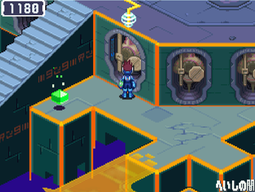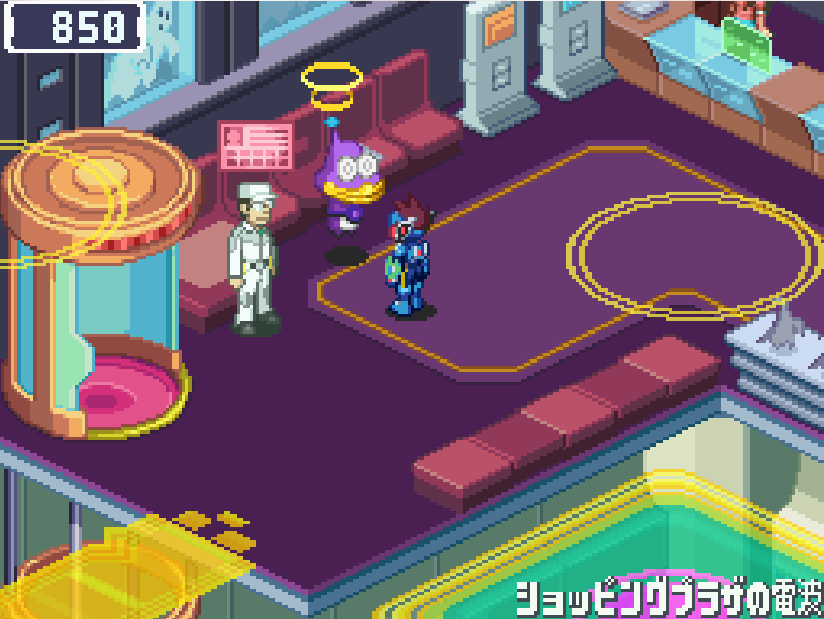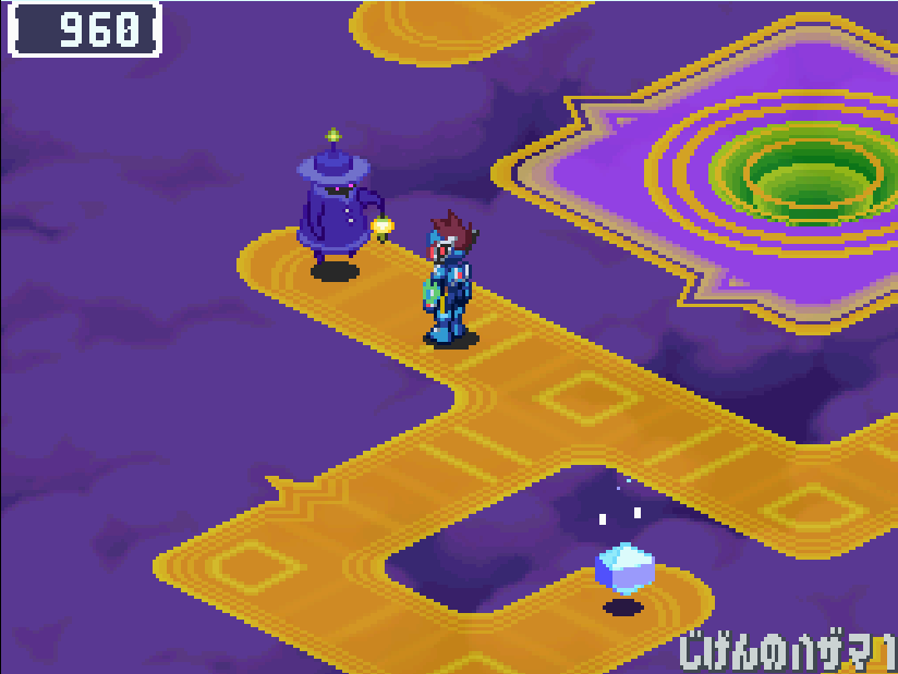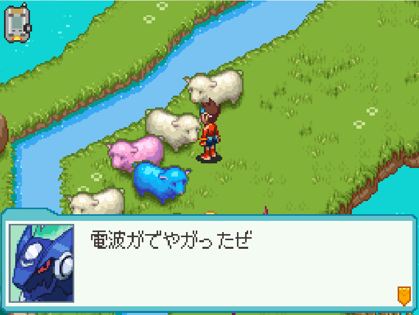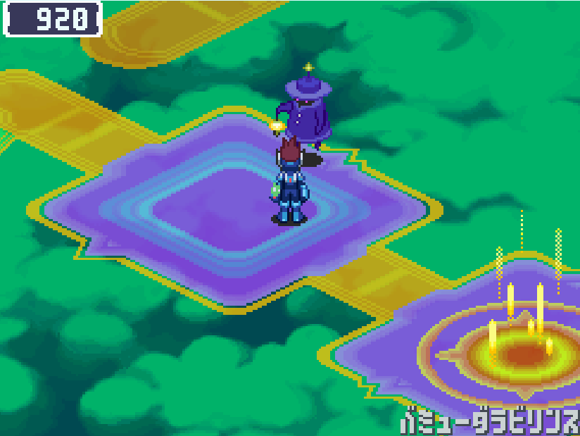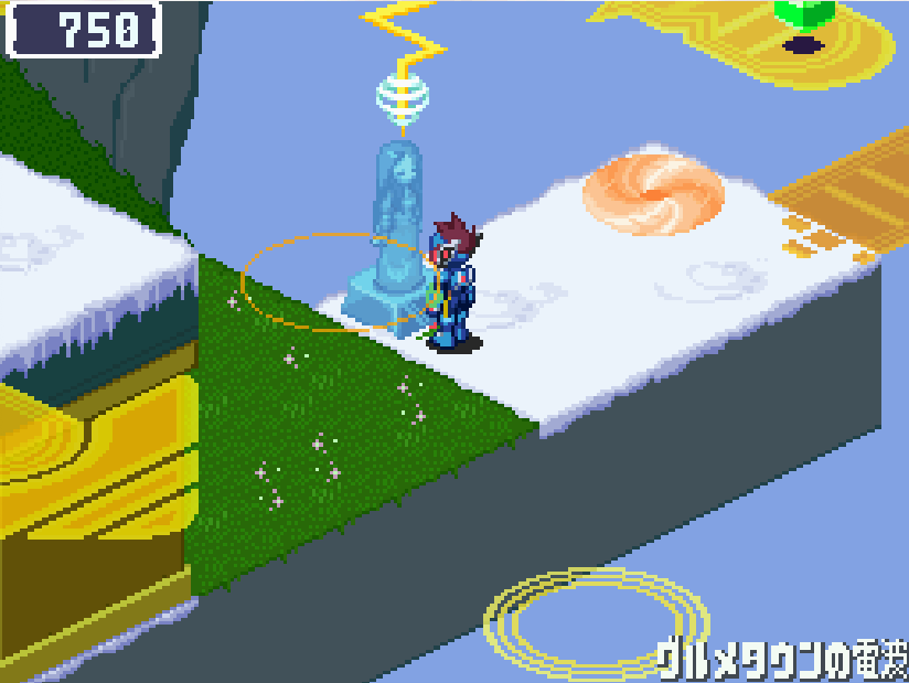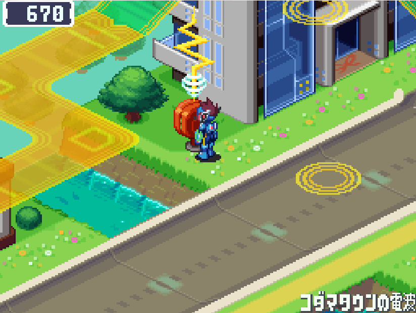 現実世界でゴン太の家の箱を調べる![]() 電波変換し、ごちゃごちゃハコの電波へ入る 下にある青色ミステリーウェーブを調べる