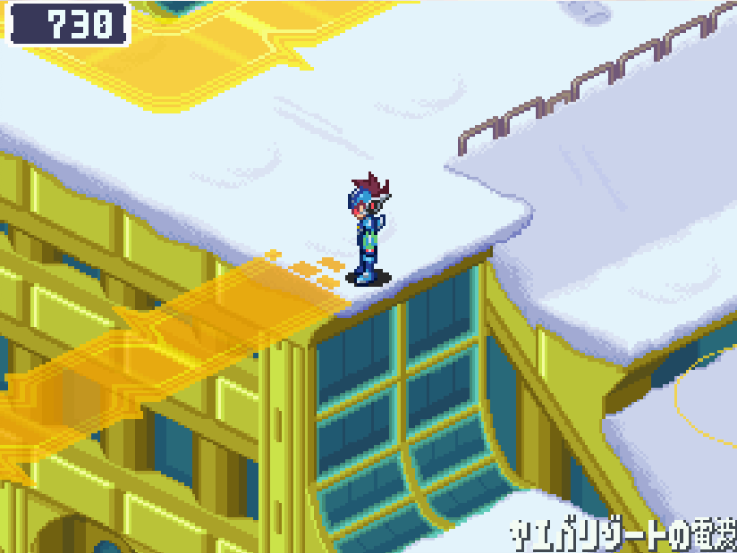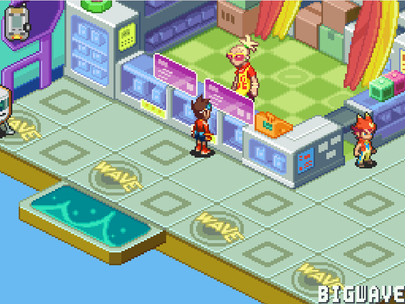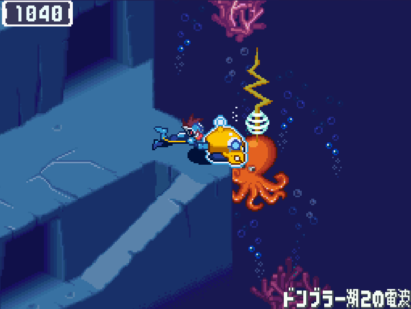 ヤエバリゾート2階のウェーブロードからグルメタウンの電波へ向かう![]() 右下に進み、こおりぞうを見つけ、ウェーブイン ![]() 左にある青色ミステリーウェーブを調べる