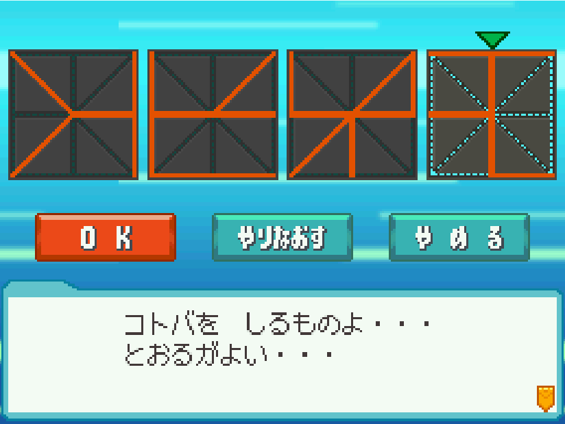 - 途中からSLECTで上画面を空にすることでヒントが出る